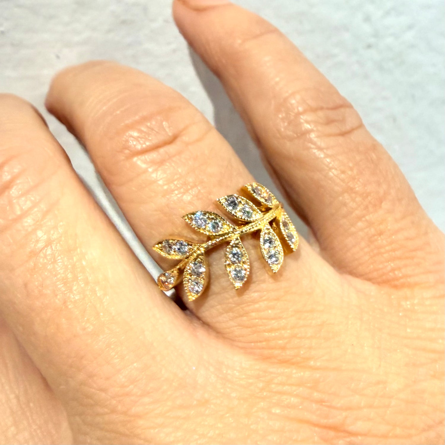 Anello Foglia con ziraconi bianchi e senza su richiesta - Qualità "luxury"