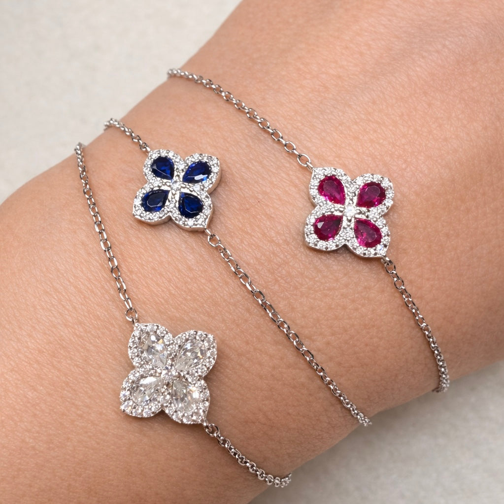 Bracciale con catena diamantata e fiore centrale, lunghezza 17cm+ allungo