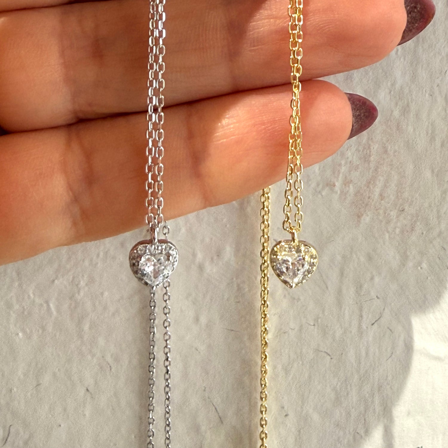 Collana Girocollo corto da 40cm+ allungo, per taglia più corta indicatelo nel campo note e personalizzazione, catena forzatina diamantata, cuore pendente, tipo kate bianco