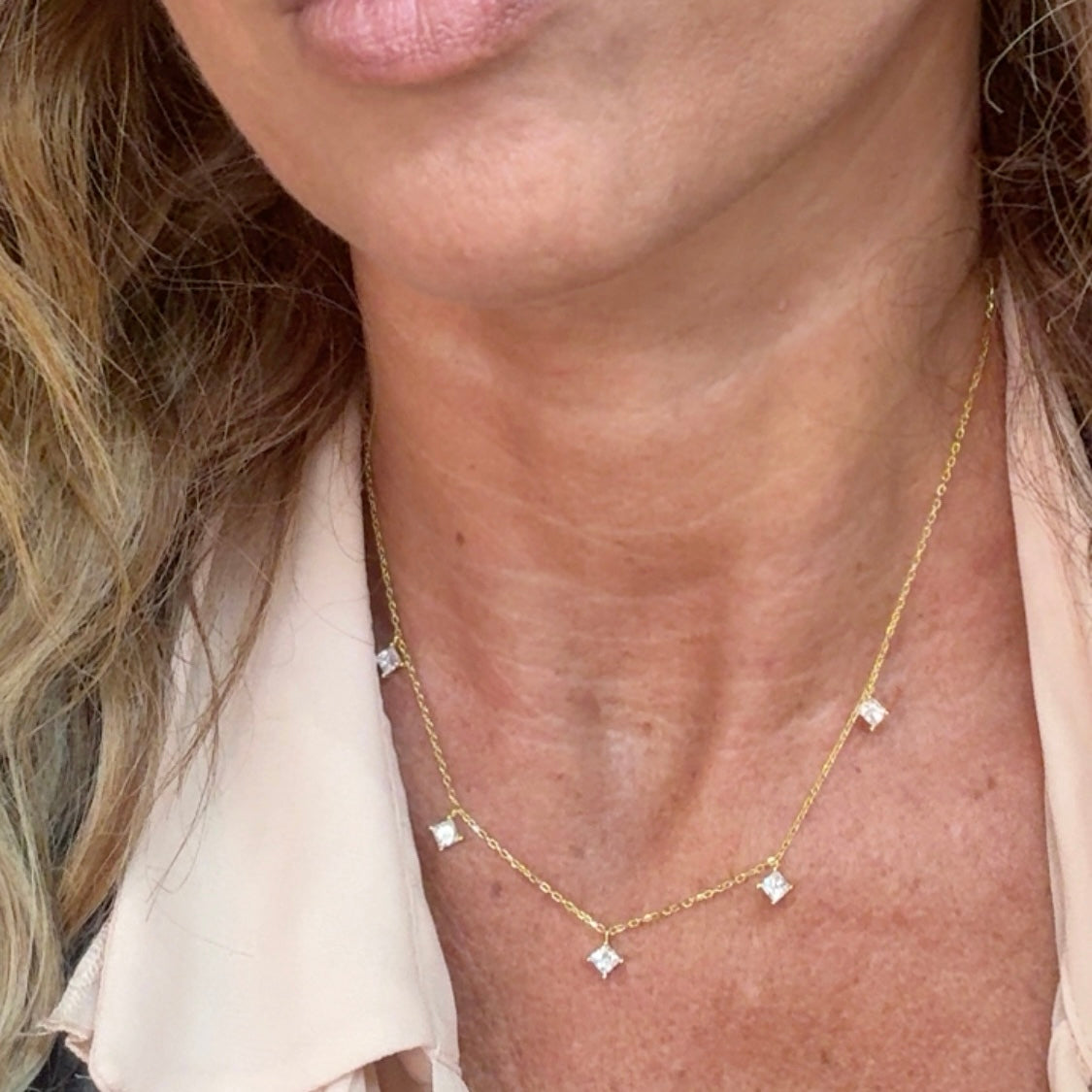 Collana lunghezza 40cm+ allungo, punti luce taglio carrè pendenti, catena forzatina diamantata, per lunghezze personalizzate scriverlo nel campo note e personalizzazioni.