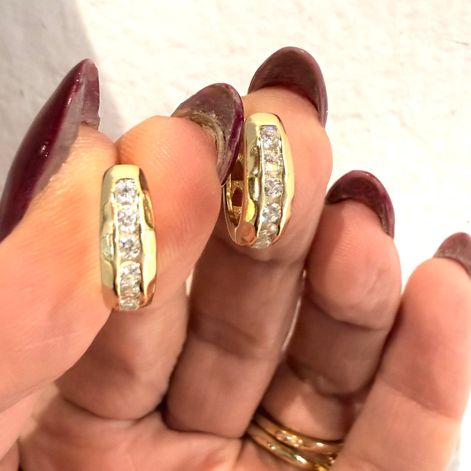 Coppia di orecchini , chiusura a scatto, diametro interno 9mm zirconi interni da 1,5mm ai lati due binari di canna liscia