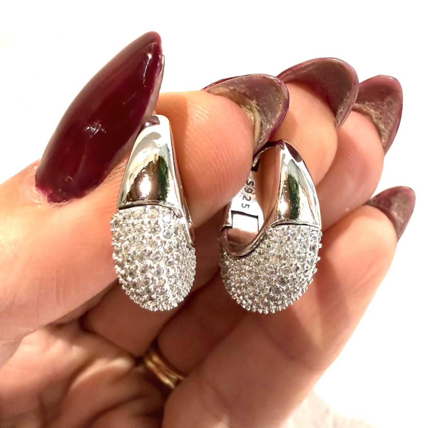 Coppia di orecchini , chiusura a scatto, Forma a borsetta, pavè di zirconi bianchi nella pancia
