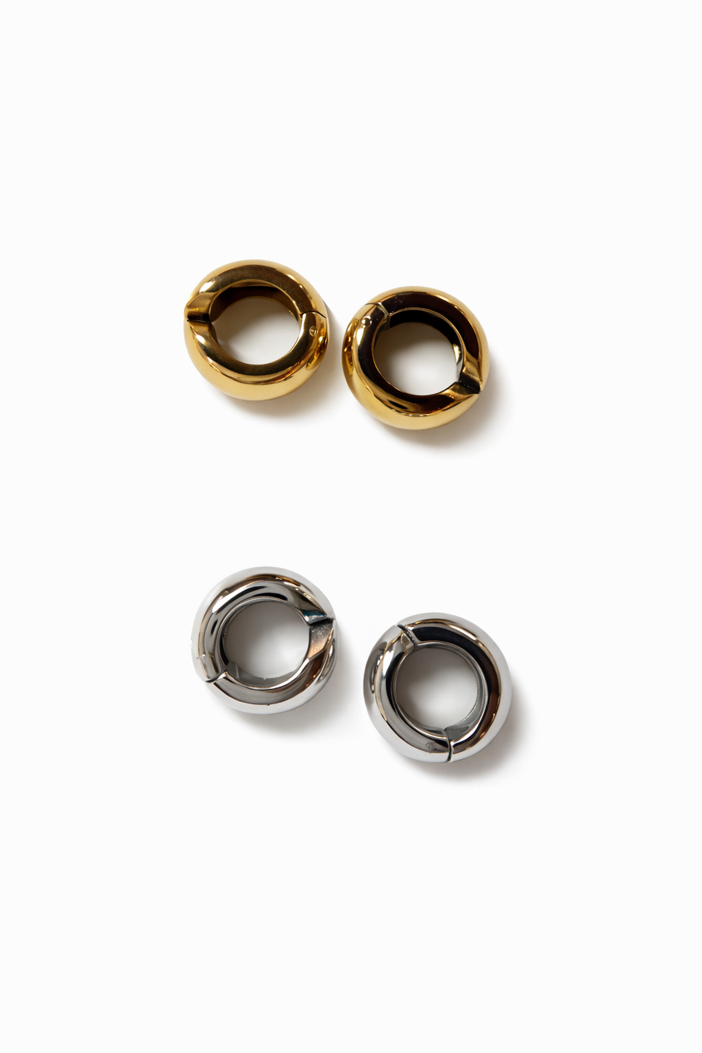 Coppia di orecchini a cerchio bombati, chiusura a molla, NON SERVE AVERE IL FORO, utilizzabili anche come earcuff