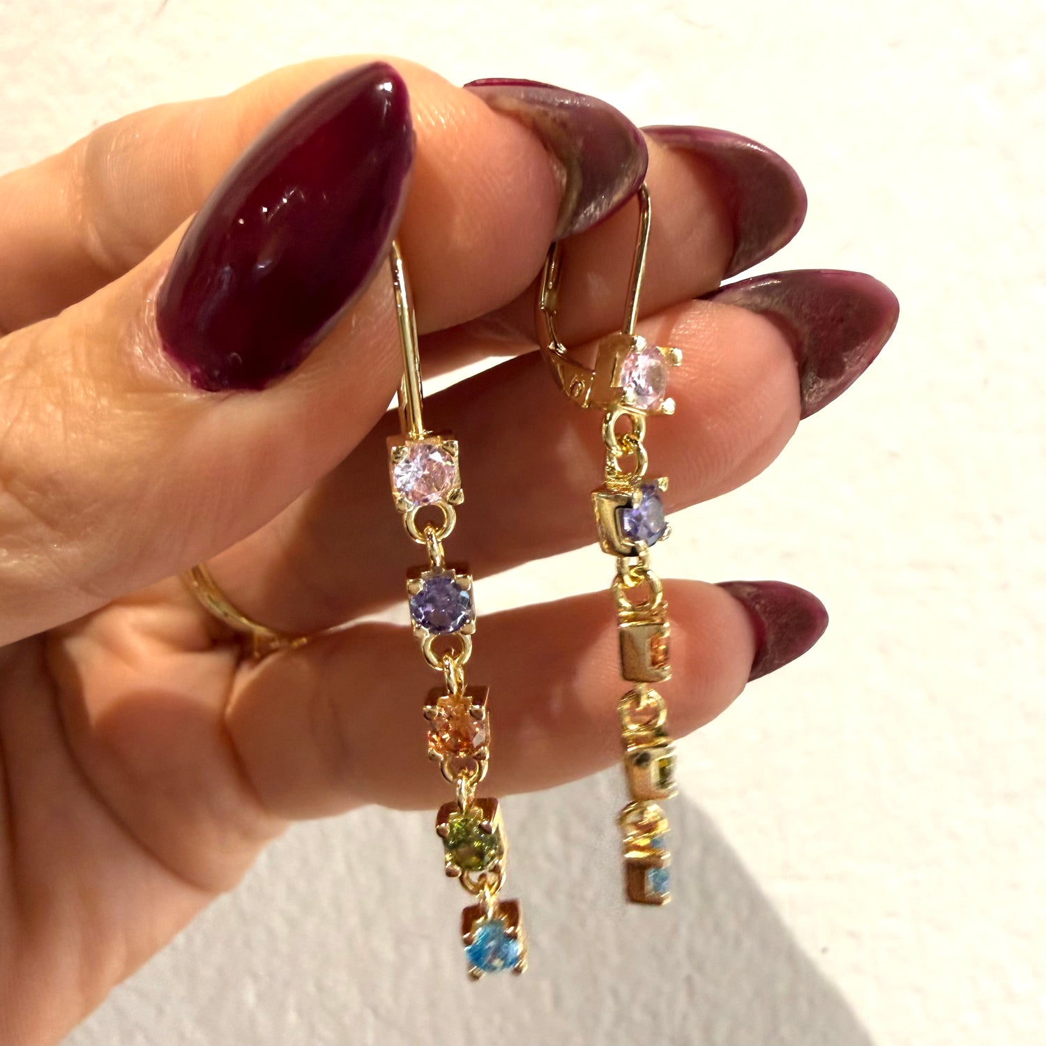 Coppia di Orecchini con chiusura a monachella chiusa, zirconi pendenti, colori autunnali , zirconi da 3mm