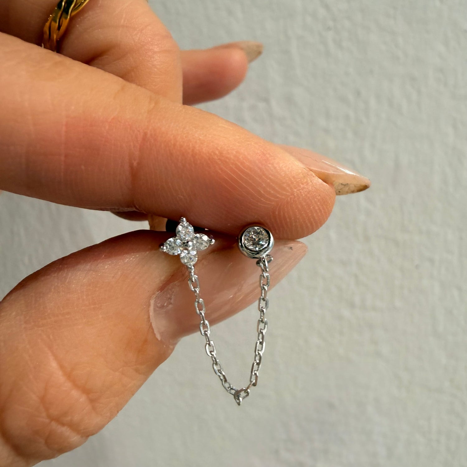 Monorecchino a perno e farfallina composto da due orecchini per Lo stesso orecchio