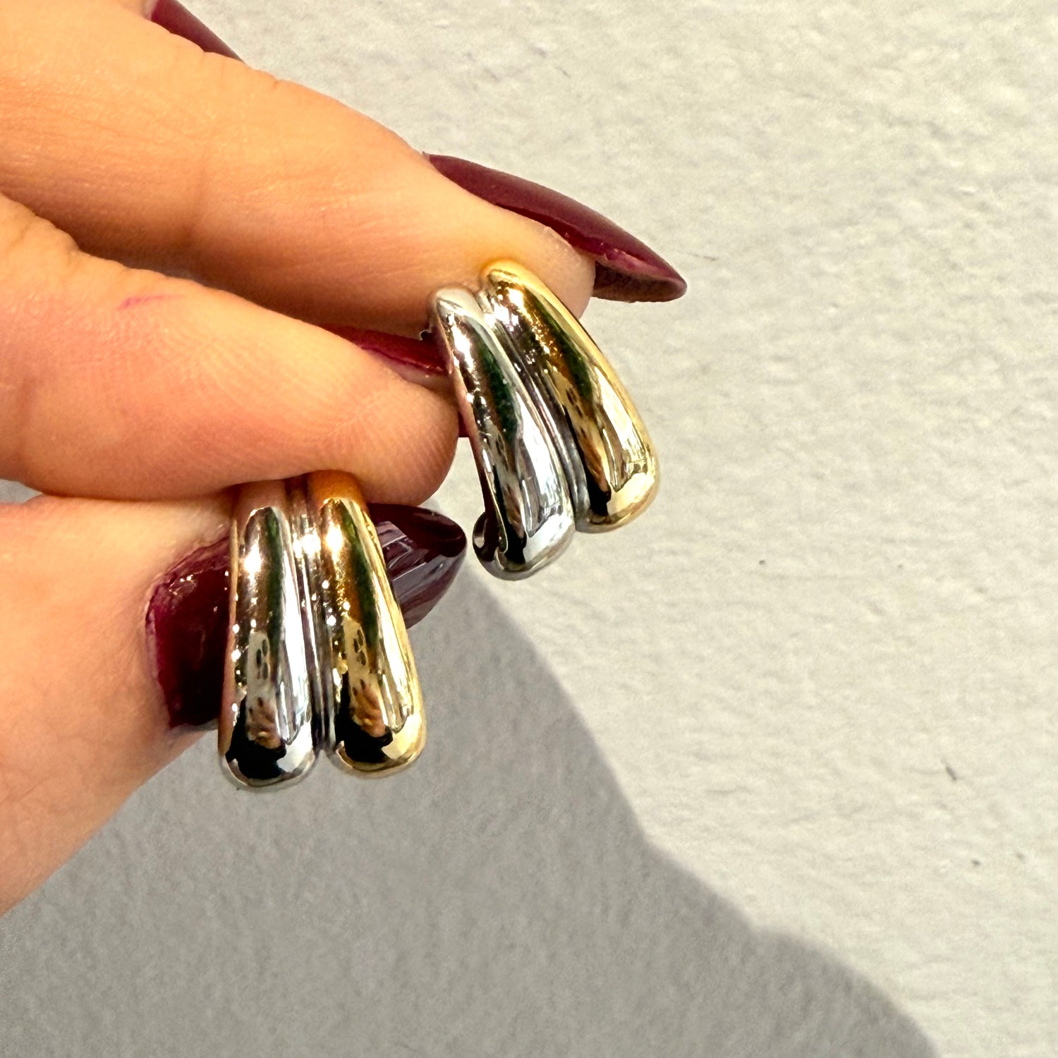Coppia di Orecchini a cerchio con chiusura a perno a farfallina, banda liscia bicolore