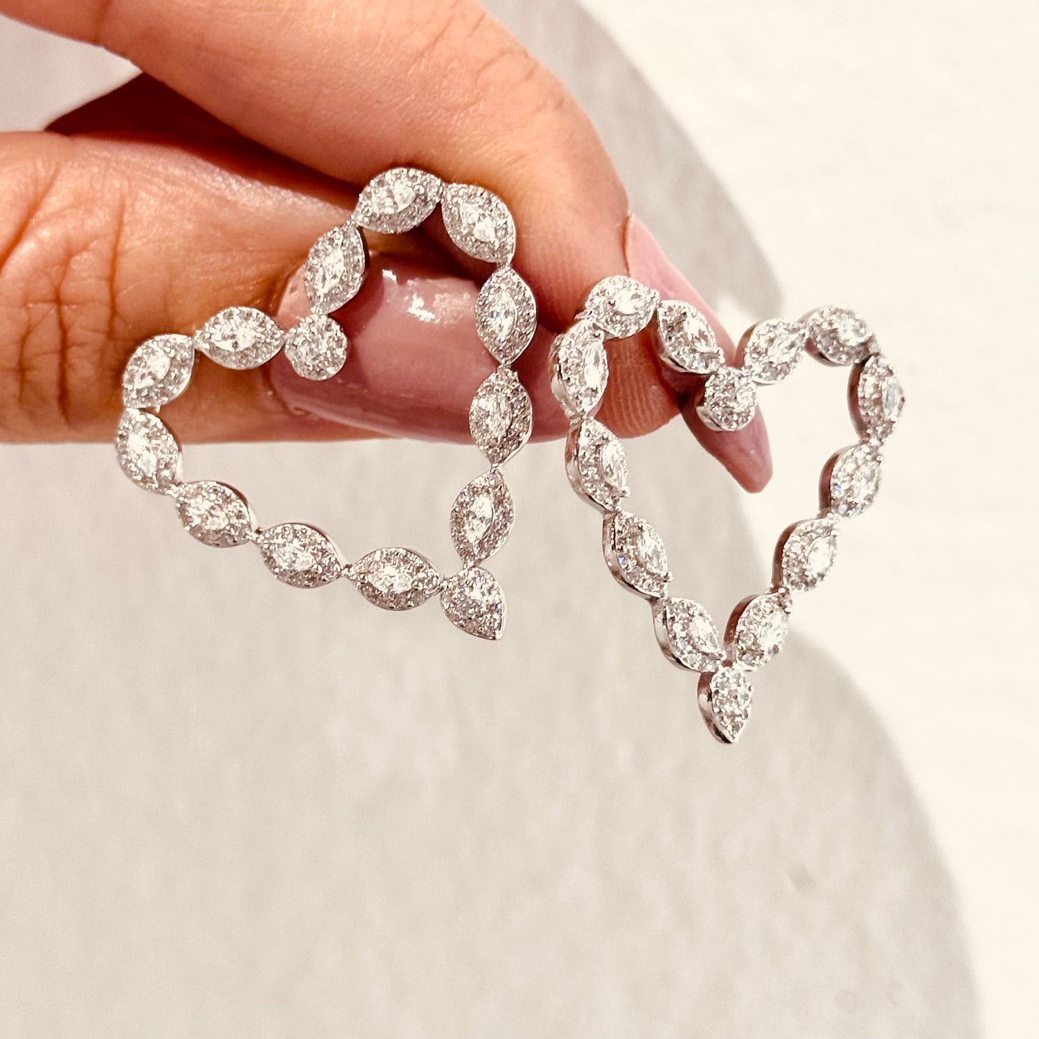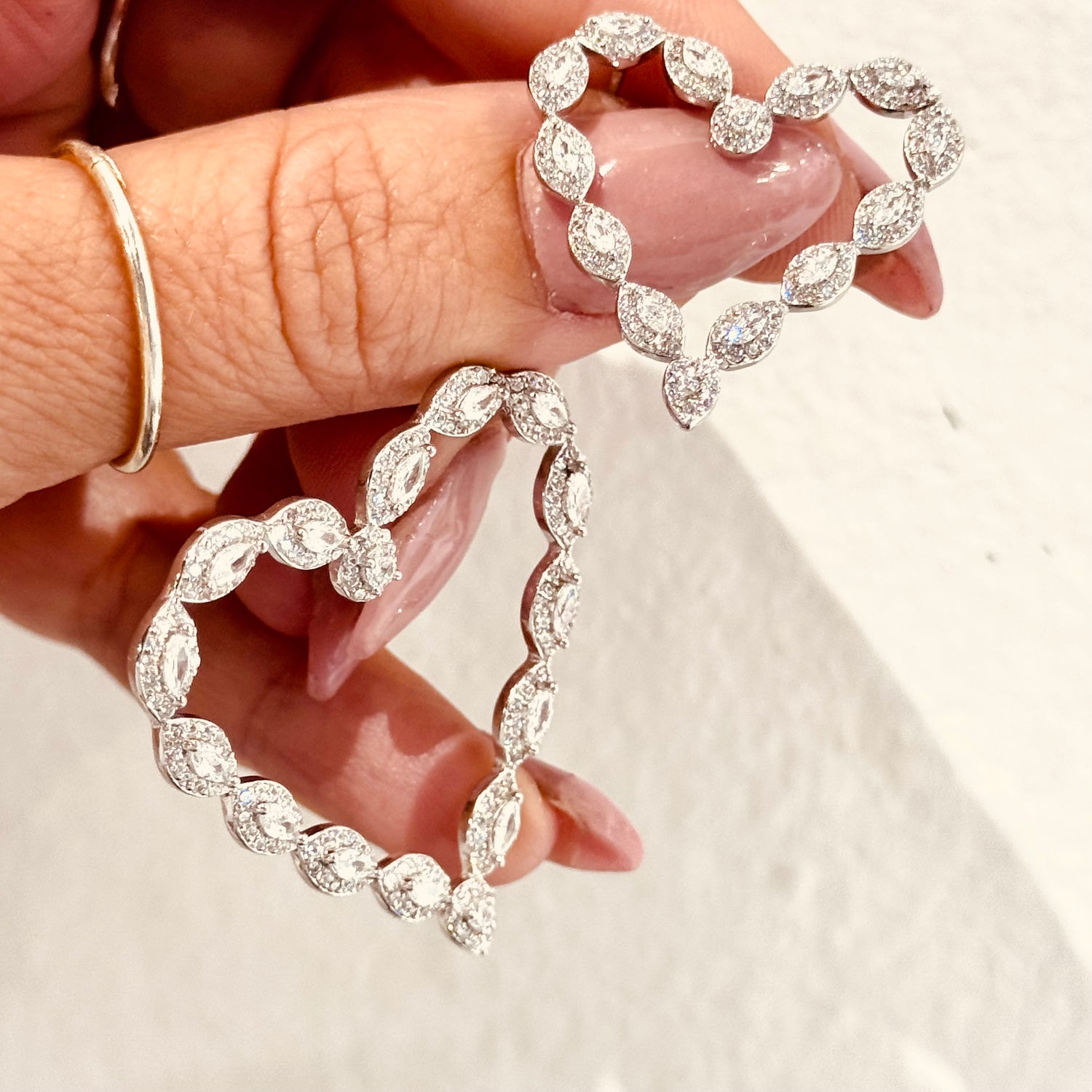 Coppia di orecchini a lobo a perno e farfallina, perno laterale, due misure, cuore da 3cm e da 4cmi