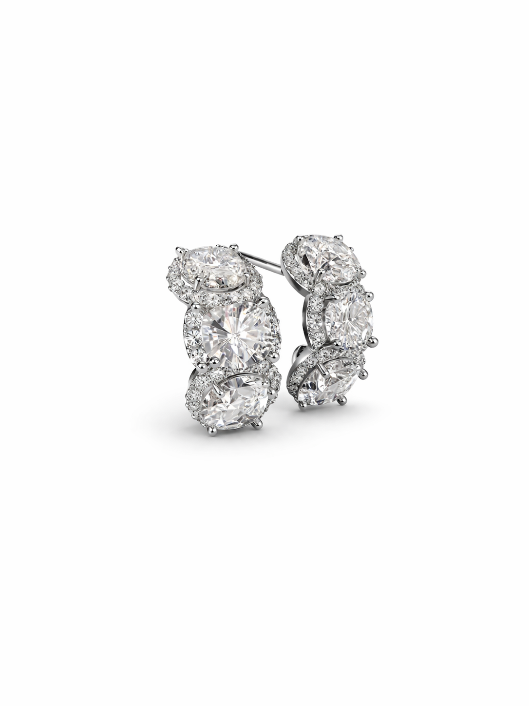 Coppia di orecchini a perno e farfallina con tre moissaniti grandi circondate da piccole pietre per donare una luce accecante
