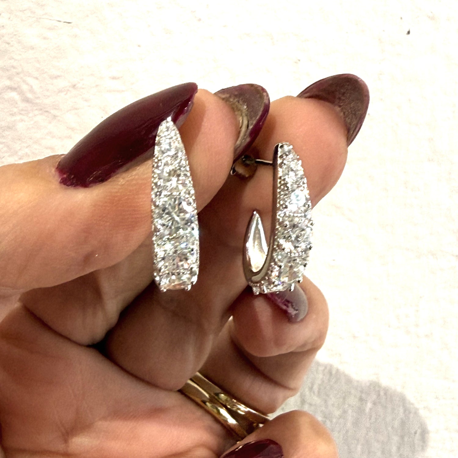 Coppia di Orecchini con chiusura a perno e farfallina posizionata appena sotto all’estremità, orecchini ad uncino, zirconi paurosamente luminosi