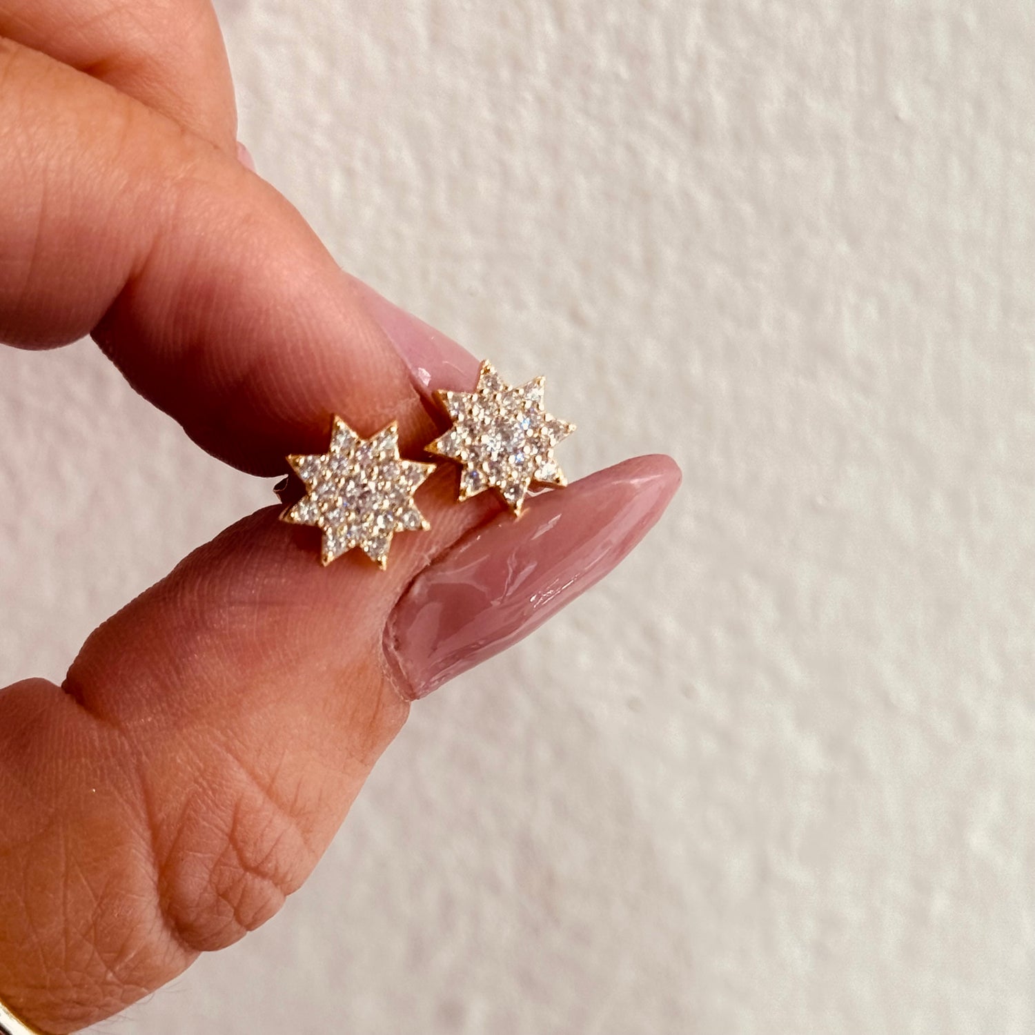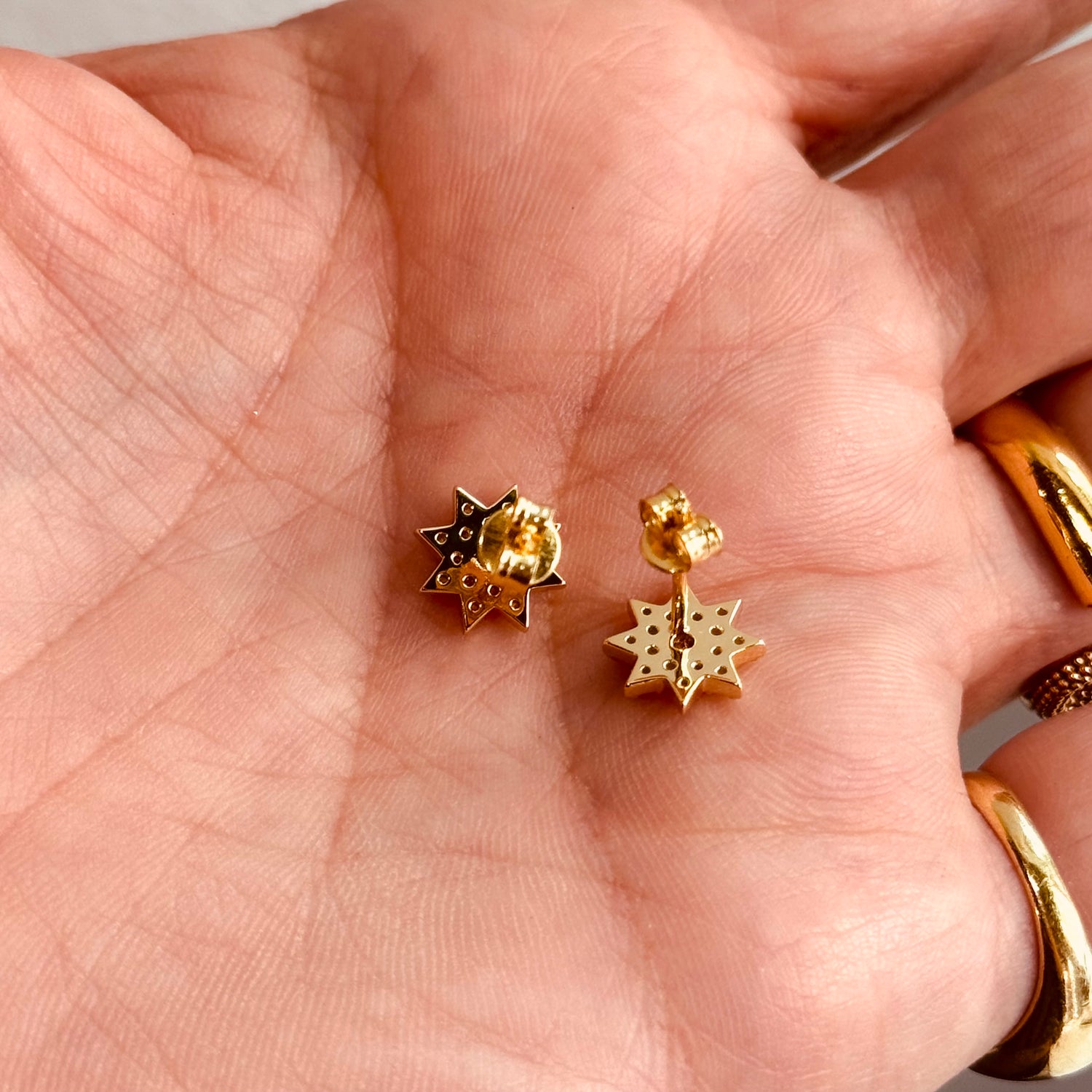 Coppia di orecchini con perno e farfallina , perno centrale, base piatta, diametro stella 8mm